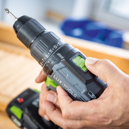 Tento aku vŕtací skrutkovač LUX-TOOLS 1 PowerSystem A-BS-20 B je možné používať nezávisle na zdrojoch energie, bez kábla, čo vám umožňuje maximálnu slobodu pohybu. Je súčasťou rodiny LUX-TOOLS 1 PowerSystem. Odporúčaný akumulátor 1 x LUX-TOOLS 1 PowerSystem AK-20/2.0 (č. 5649504) a nabíjačka LUX-TOOLS 1 PowerSystem SLG-20/2.4 (Single-Charger č. 5649538).