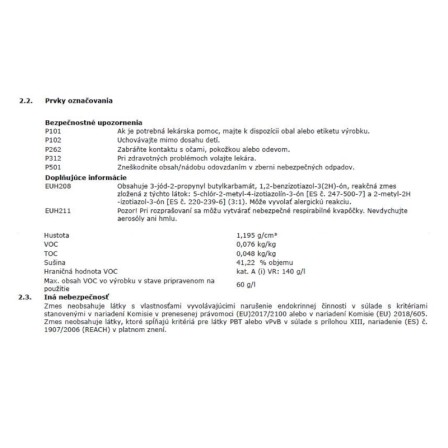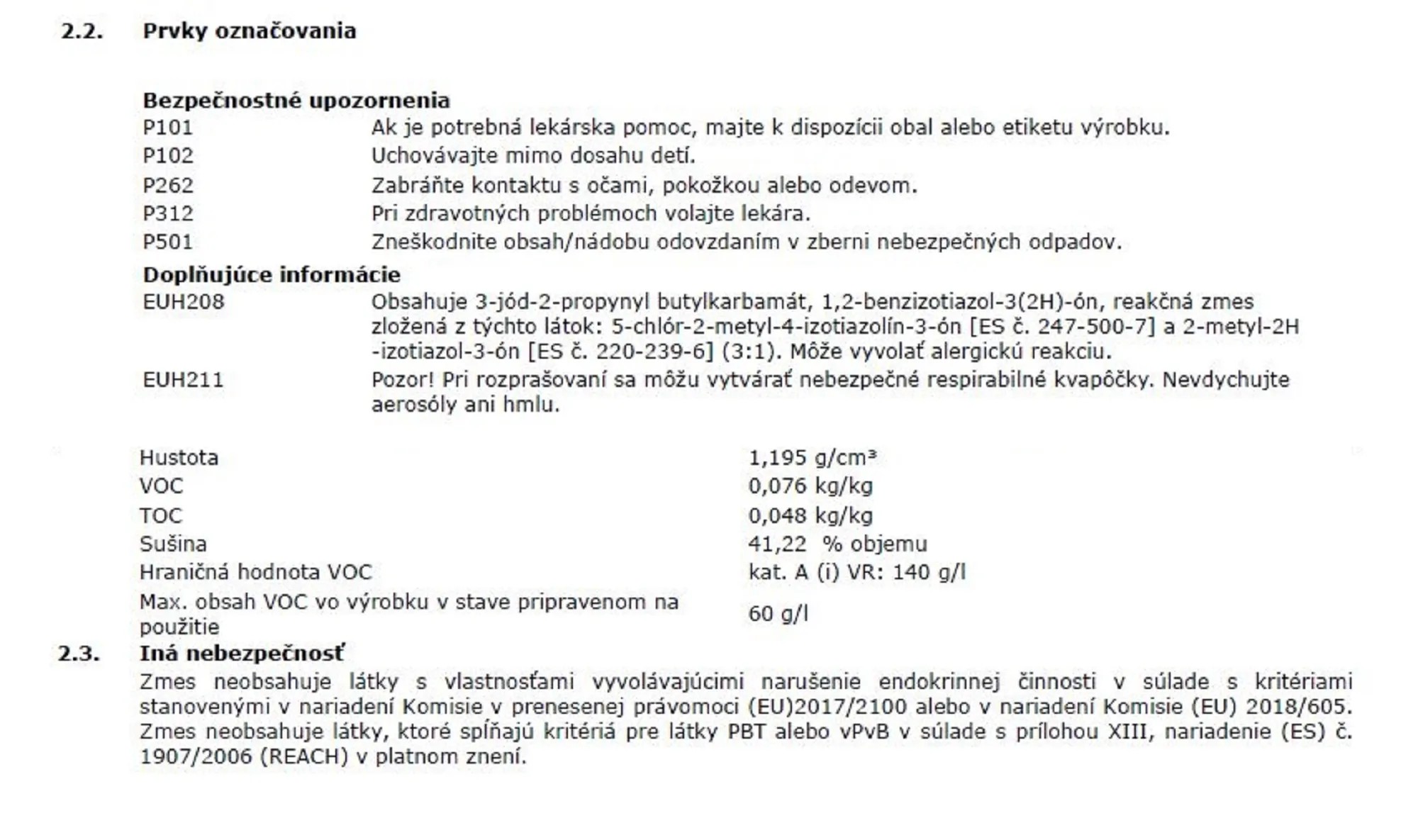 | Vhodné pre alergikov na izotiazolinóny: | Nevhodný |