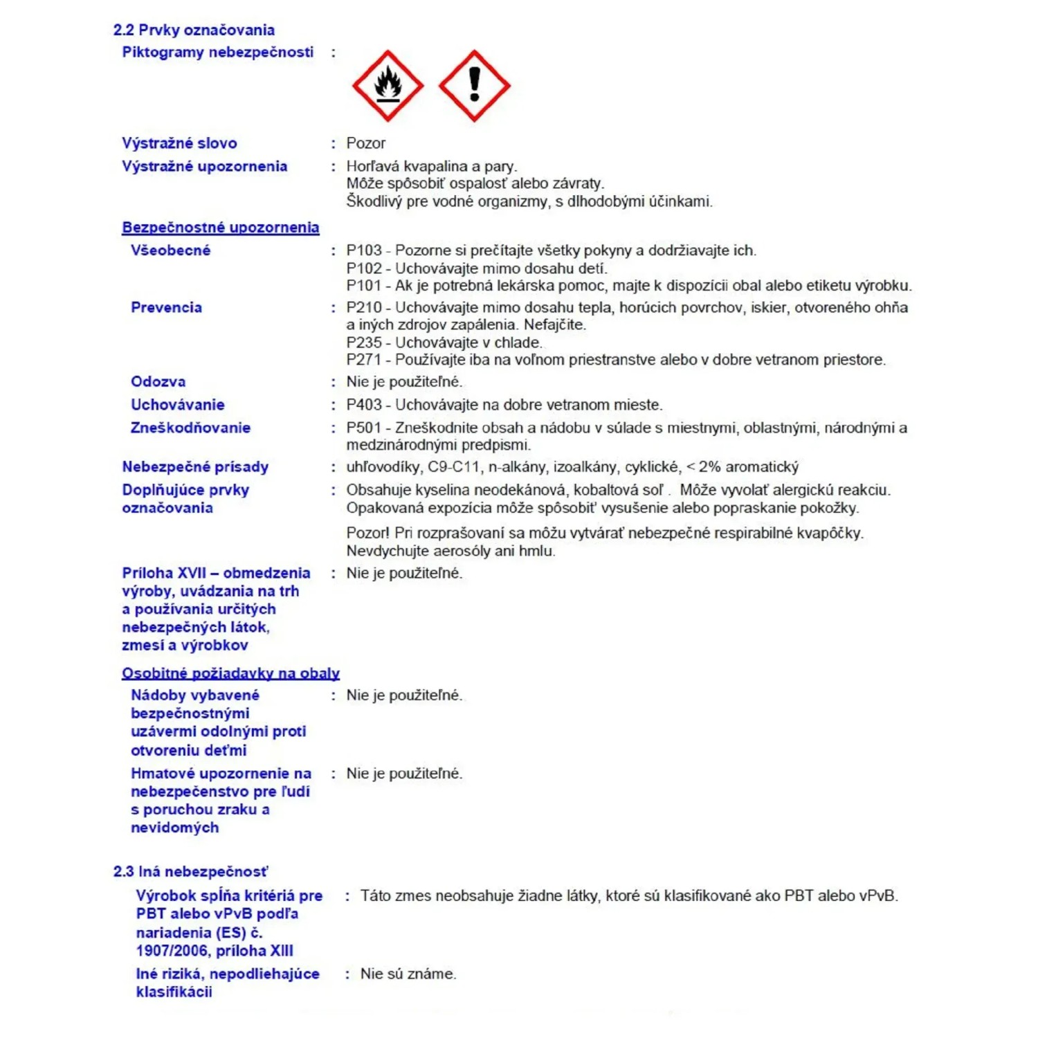 | Bez rozpúšťadiel: | Nie je bez rozpúšťadiel |
