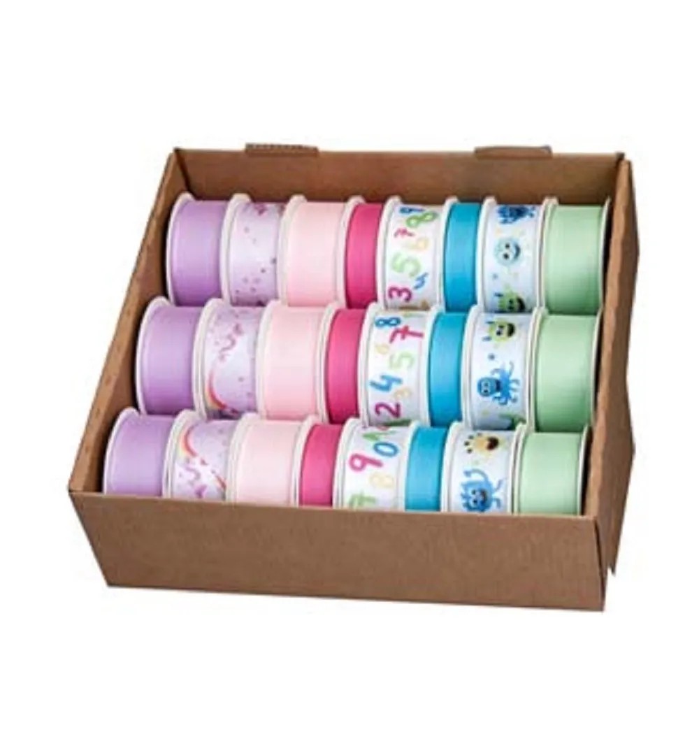 Saténová stuha s detskou potlačou v rôznych farbách a veľkostiach - 25 mm x 2 m alebo 25 mm x 3 m alebo 15 mm x 4 m.