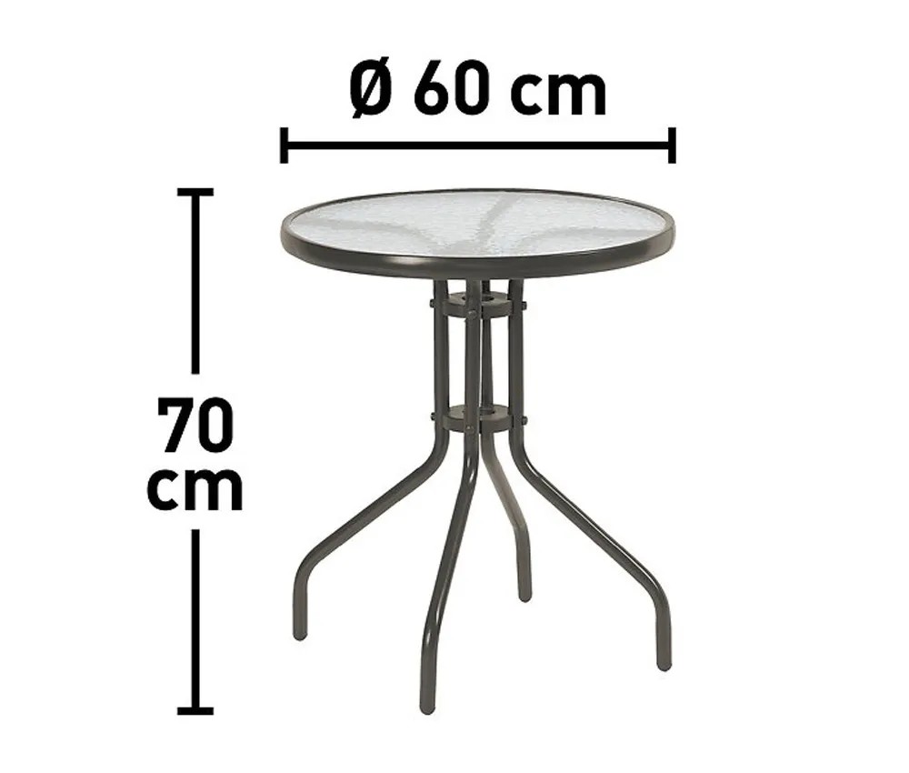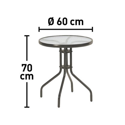 Balkónový stôl je ideálny pre použitie na balkóne, terase alebo záhrade. Hodí sa na odloženie nápojov, časopisov, kníh a iných potrieb. Kovová konštrukcia je robustná a odolná voči poveternostným vplyvom. Povrch záhradného stola je možné jednoduchým utieraním ľahko očistiť vlhkou handričkou. Okrúhly balkónový stôl má výšku 70 cm a priemer 60 cm. Poskytuje tak dostatok miesta pre dve osoby na pitie kávy alebo príjemné posedenie.