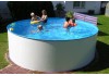 - Oceľový plášť 0,4 mm - pozinkovaný s ochranným lakom, zvonku dodatočne povrchovo upravený plastom. Kruhový bazén vrát. oceľových nosníkov a montážnych dielov