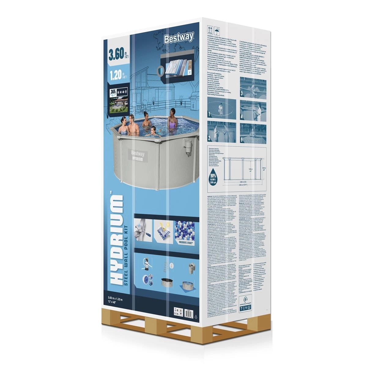 S vysoko kvalitným bazénom s oceľovým rámom Bestway Hydrium si užijete veľa zábavy a osvieženia. Bazén jednoducho postavíte a v zime ho buď môžete ponechať na záhrade, či zase zložiť. Nie je potrebné žiadne náradie ani skrutky. Záhradný bazén je vyrobeý z nehrdzavejúcej ocele. Materiál sa vyznačuje robustnosťou a dlhou životnosťou. Vďaka oceľovej rebrovanej konštrukcii je bazén veľmi stabilný. Odolný farebný povlak ponúka dostatočnú ochranu. Bazén má priemer 360 cm a výšku 120 cm. Celková plocha bazénu je 10 m2.