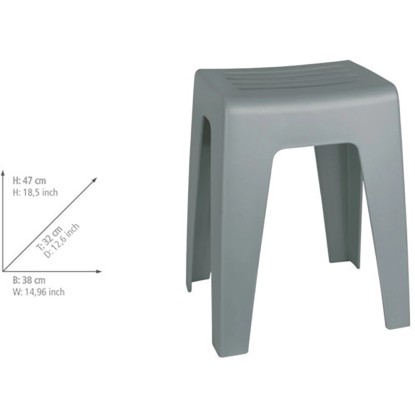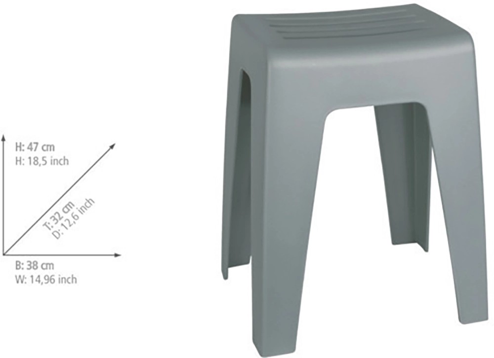 Wenko Plastová kúpeľňová stolička Kumba, sivá, 47 x 38 x 32 cm