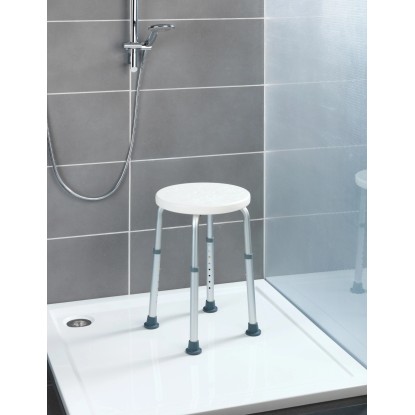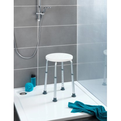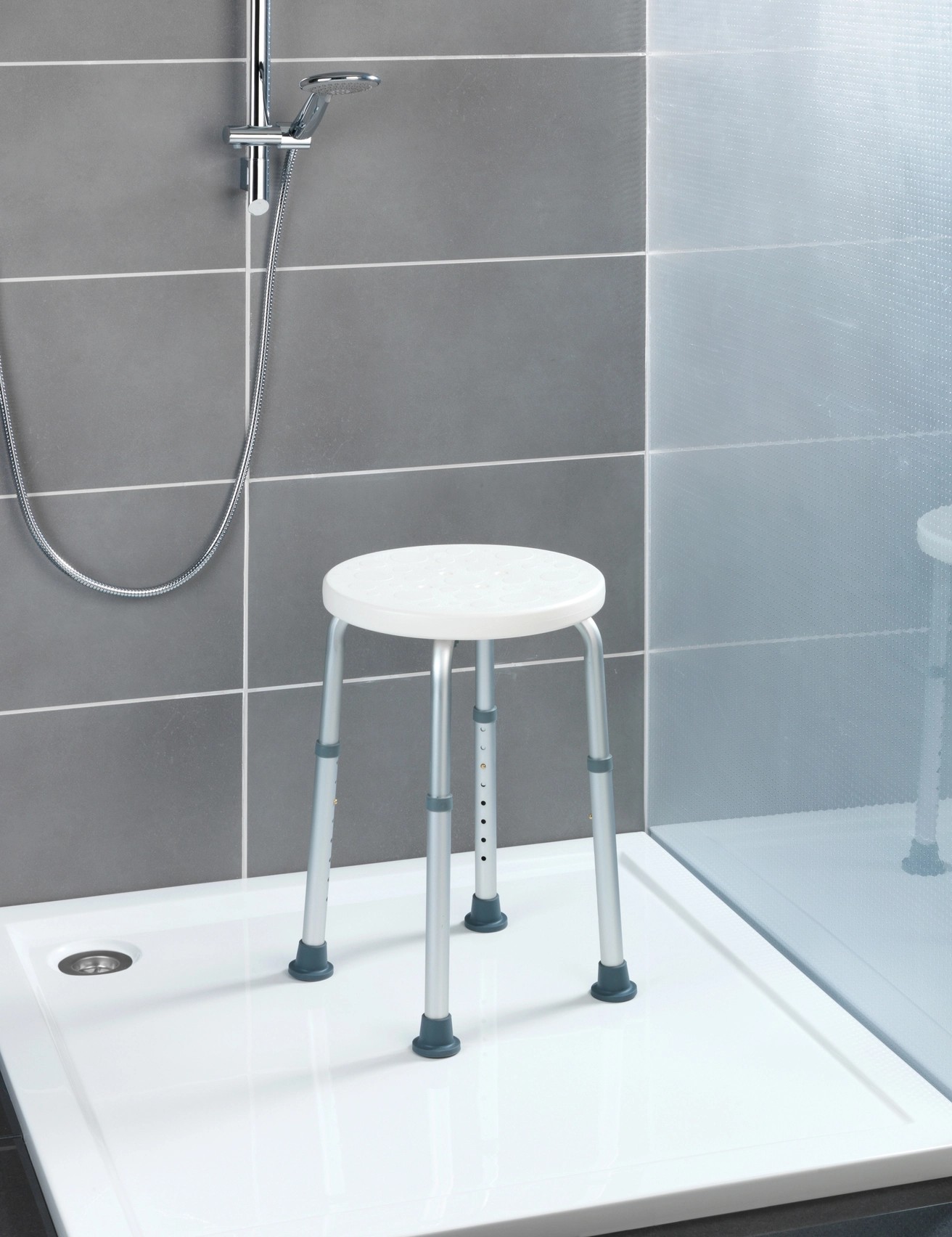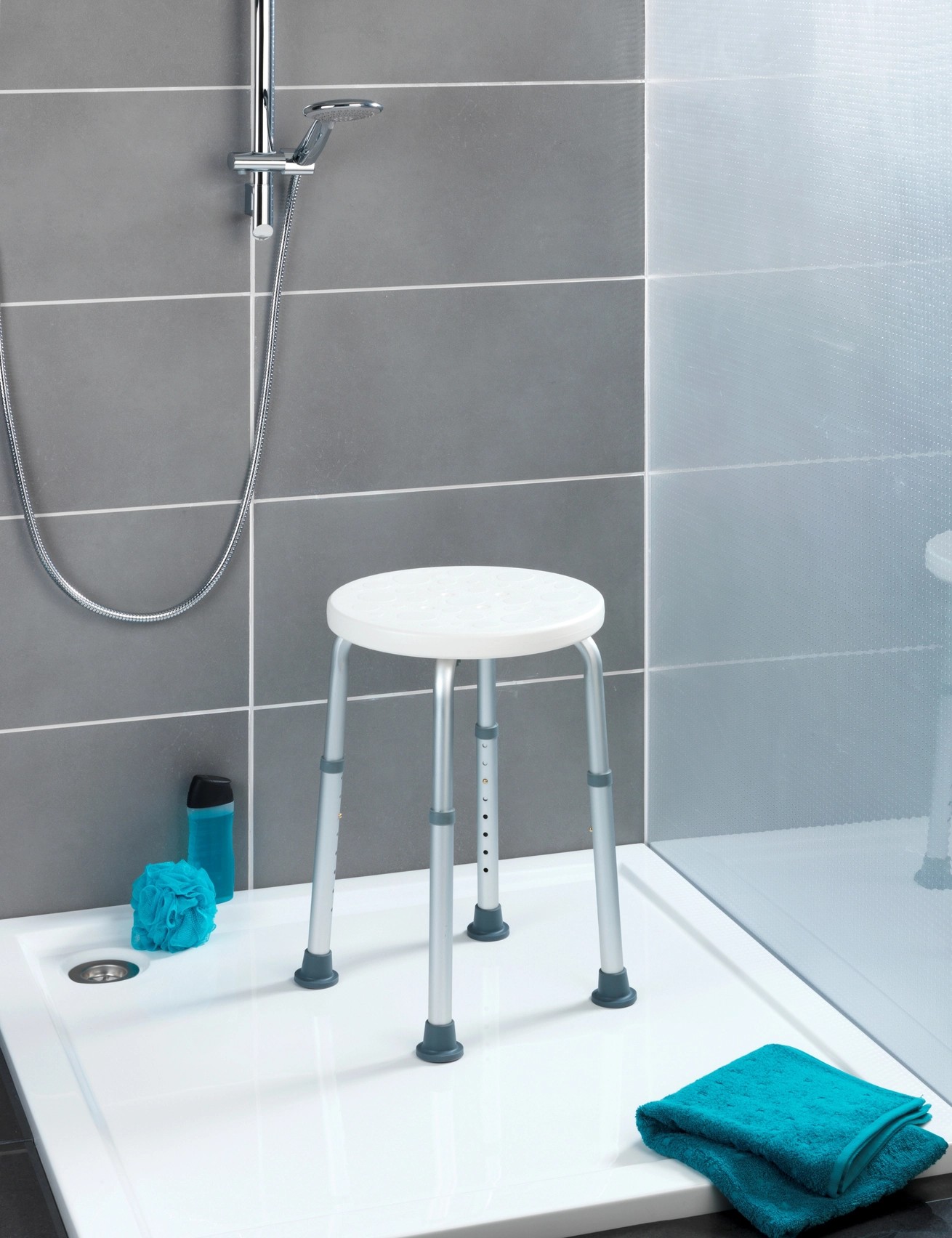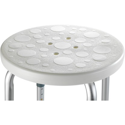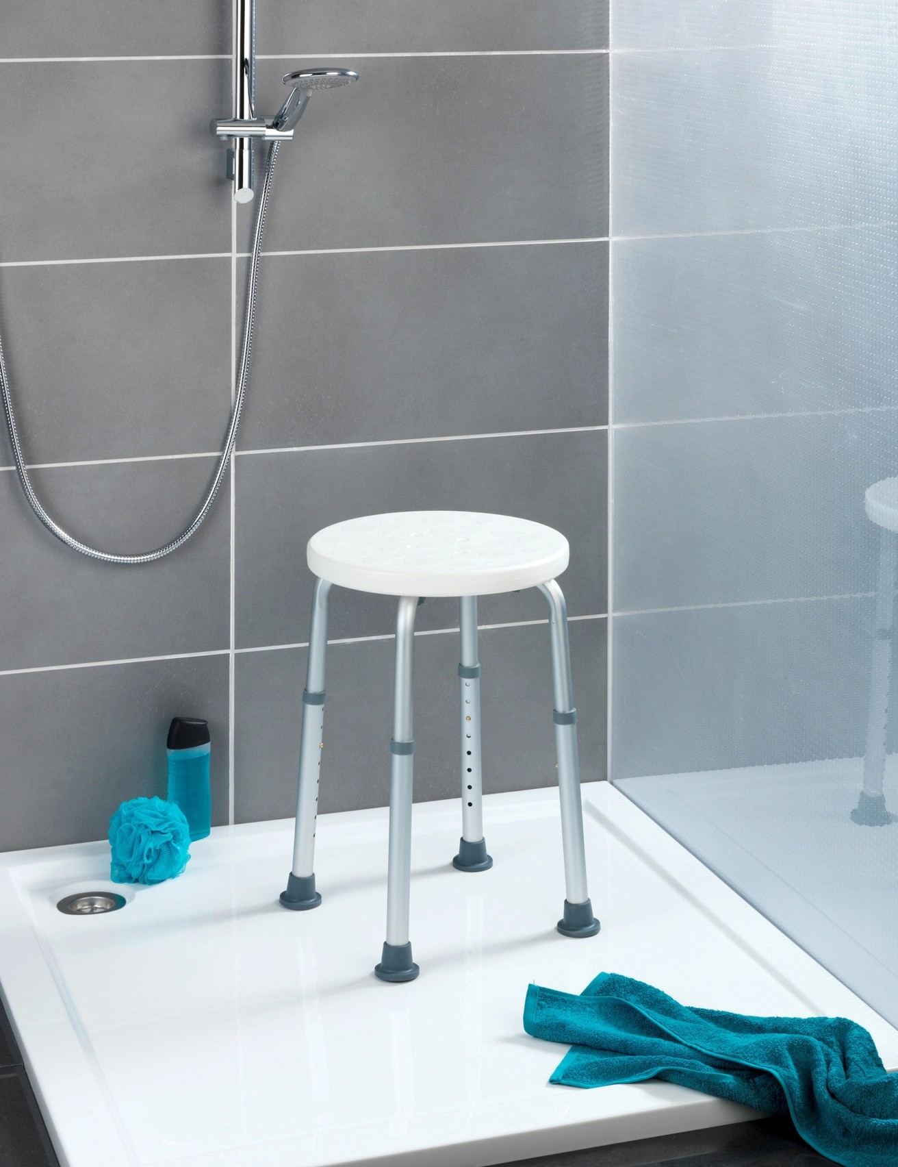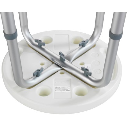 Sedacia plocha stoličky do kúpeľne je vyrobená z kvalitného, stabilného plastu a nohy sú z hliníka s gumenými koncovkami.