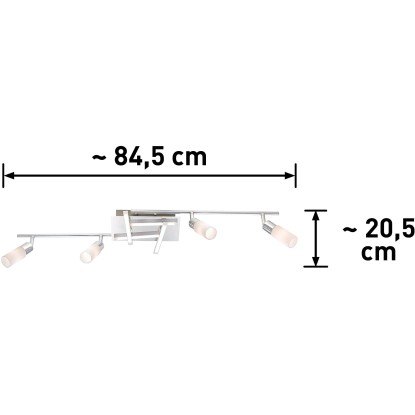 Svietidlo sa skladá zo 4 pevne zabudovaných LED panelov upevnených k pochrómovanej základni a 4 sklenených bodových svietidiel s objímkou G9 pre žiarovky max. 2,5 W. Jednotlivé bodovky sú smerovo nastaviteľné. Každý LED panel (4x) má výkon 2,5 W, svietivosť 1400 lm a svieti teplú bielu farba svetla v teplote chromatičnosti 3000 K. Súčasťou svietidla sú 4 žiarovky s päticou G9, svietivosťou 1400 lm s teplotou chromatičnosti 3000 K. Životnosť svietidla je 20 000 hodín.