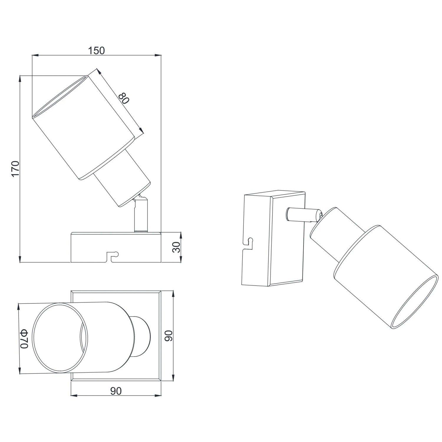 Reality Nástenné/stropné 1bodové svietidlo Cadiz, antracitová, 9 x 9 x 15 cm