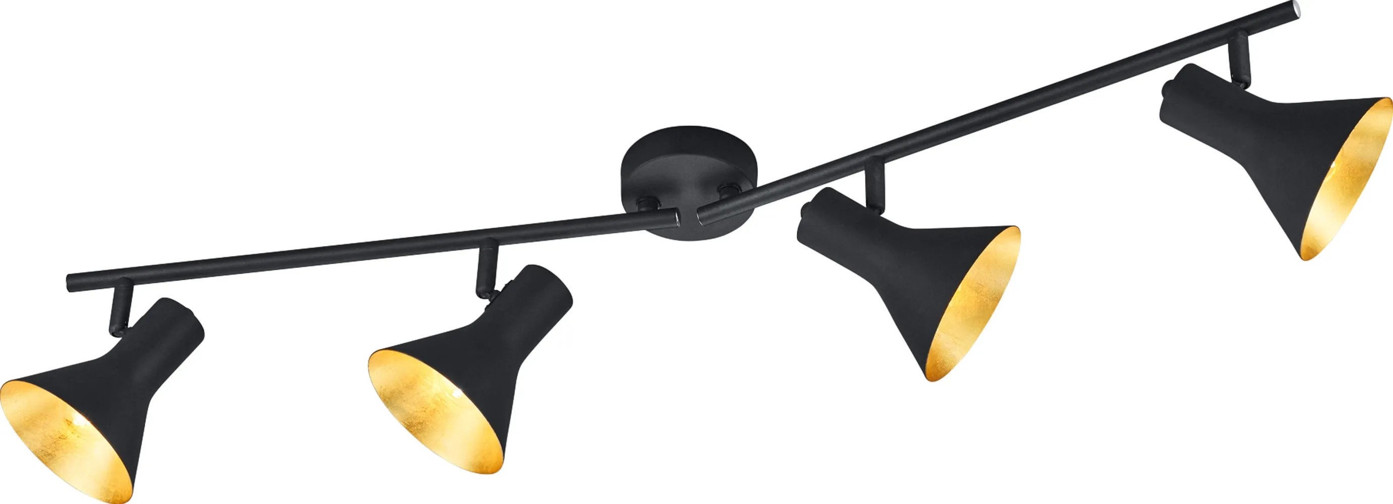 Kontrastná farebná kombinácia čiernej a zlatej farby robí z klasického 4-bodového svietidla NINA pravý pútač pozornosti. Tento skvelý vzhľad a zlatý odtieň vnútornej časti tienidla vyžaruje útulne pôsobiace svetlo a vytvára tým pôsobivú atmosféru vo vašich miestnostiach. Svietidlo je vybavené objímkou E14 pre maximálny príkon 40 W.