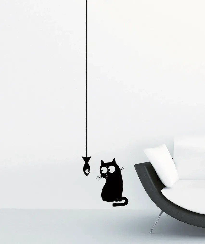 Crearreda Samolepiace dekorácie, mačka s rybou, 2 hárky, 15 x 31 cm