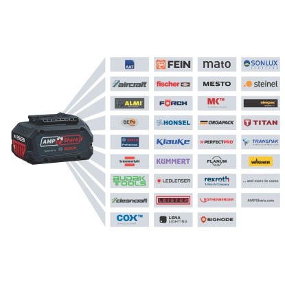 AMPShare je akumulátorový systém zastrešujúci viacero značiek pre profesionálov z oblasti remesla a priemyslu. S jedným zdieľaným akumulátorovým systémom môžete flexibilne prechádzať medzi rôznym profesionálnym náradím a značkami - a to bez akýchkoľvek zádrhelov. S viac ako 80 miliónmi predaných akumulátorov a rýchlo rastúcou alianciou predstavuje AMPShare 18V akumulátorový systém, na ktorom môžete stavať. Viac informácií nájdeš na www.ampshare.com