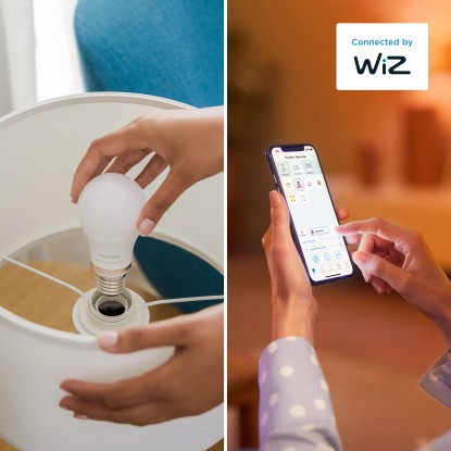Smart žiarovky Philips Smart LED s vysokým svetelným výkonom sú vhodné pre štandardné domáce svietidlá a dodajú vám celé spektrum farebného svetla. Žiarovky sú vybavené technológiou WiZ Connected. Pri pripojení na Wi-Fi ich môžete ovládať zo smartfónu odkiaľkoľvek pomocou aplikácie WiZ alebo hlasovými povelmi pomocou asistentov Asistent Google, Amazon Alexa alebo Siri Shortcuts.