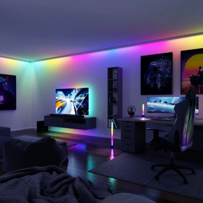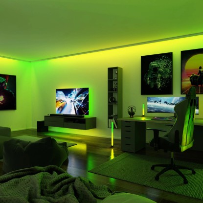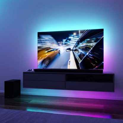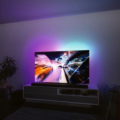 Paulmann LED pásik EntertainLED poskytuje trojstranné osvetlenie za televízorom. Ambient Light je vhodný pre televízory s uhlopriečkou obrazovky 55". LED pásiky vytvárajú štýlové TV osvetlenie s pokojnými alebo dynamickými zmenami farieb. LED pásiky šikovne usporiadajú domácu zábavu a herné oblasti.