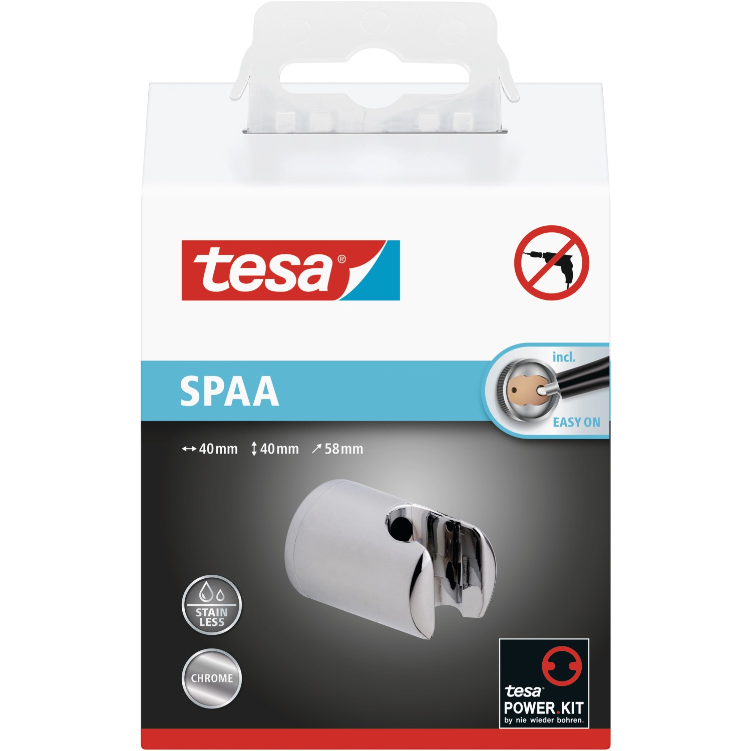 tesa Držiak sprchovej hlavice na stenu Spaa, chróm, 40 x 40 x 58 mm