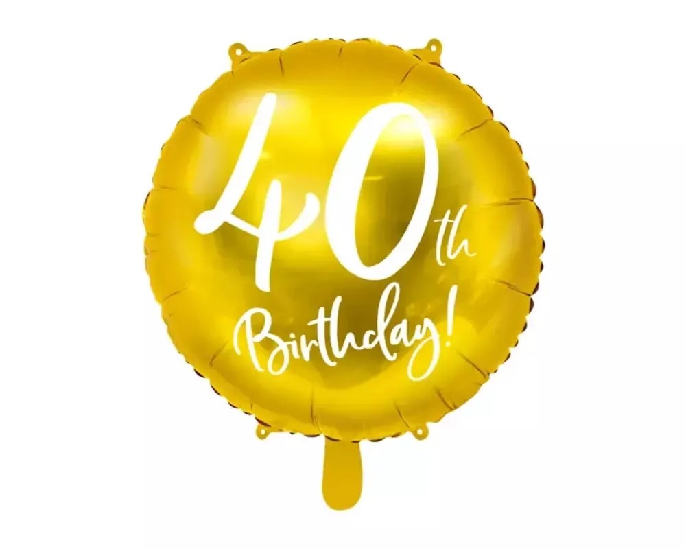 Originálny okrúhly fóliový balónik v zlatej farbe s bielou číslicou 40 doladí Vašej párty k dokonalosti. Balónik je vhodný na zavesenie do priestoru, na dozdobenie narodeninového stola alebo po naplnení balónika héliom nechať balónik voľne vznášať v priestore.
