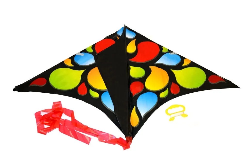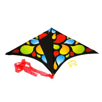 Lietajúci drak jednošnúrový. Silná PE fólia, držadlo na navíjanie. Rozmery: 61 x 114 cm. 2 varianty - čierna, modrá.