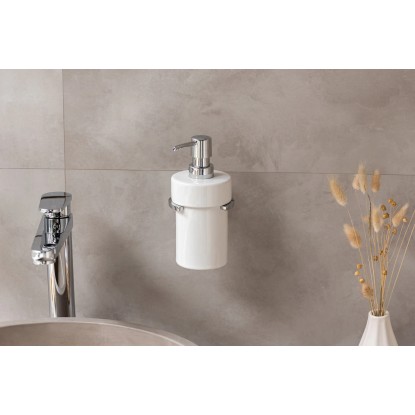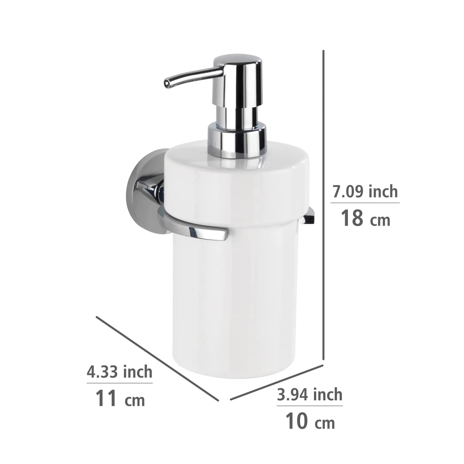 Vďaka praktickému nástennému držiaku môžete dávkovač mydla Wenko Isera upevniť do požadovanej výšky. Vyberateľný dávkovač mydla je vyrobený z kvalitnej keramiky a je možné ho naplniť až 360 ml tekutého mydla.