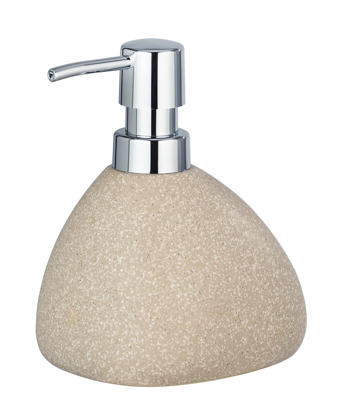 Moderný dávkovač mydla zo série kúpeľňových doplnkov Pion je vyrobený z vysokokvalitnej keramiky a každej kúpeľni dodá výnimočný šarm. Vďaka štýlovému, trojuholníkovému tvaru s prírodným, béžovým vzhľadom kameňa pôsobí každá kúpeľňa hneď útulnejšie a harmonickejšie. Štýlový dávkovač mydla sa môže individuálne naplniť 360 ml tekutého mydla alebo emulzie. Jemným stlačením dávkovacej hlavy sa vytlačí požadované množstvo mydla alebo emulzie. Aj v kuchyni sa dávkovač dá ideálne naplniť prostriedkom na umývanie riadu, aby spríjemnil otravné umývanie. A staré, nepekné plastové fľaše už doslúžili. Okrem šarmantného dávkovača mydla Pion ponúka Wenko aj vhodný pohár na zubné kefky, misku na mydlo a WC súpravu. Vďaka tomu môžete vo svojej kúpeľňu a WC pre hostí vytvoriť úplne nový vzhľad.