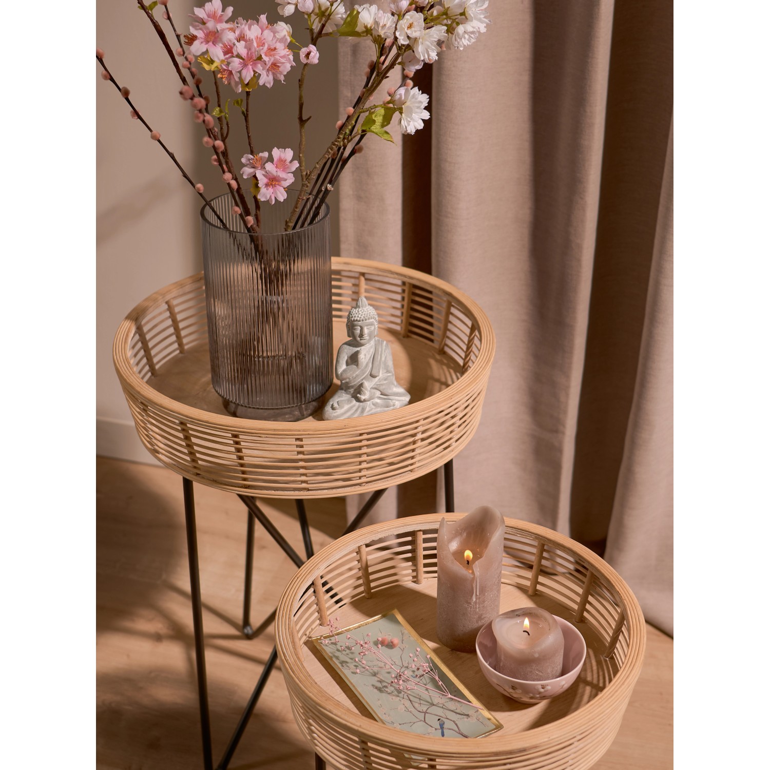 Náš minimalistický interiérový trend v štýle japandi harmonicky spája útulnosť a funkčnosť. Čierne detaily na nábytku alebo doplnkoch sa postarajú o optickú hĺbku, ktorá dodá vášmu domovu upokojujúcu atmosféru. Ďalekovýchodné vplyvy a typické ázijské prvky, ako sú kvety čerešne, kombinované s prírodnými materiálmi - vaše vnútorné čchi sa vďaka tomu dostane do rovnováhy. Vytvorte si doma svoju oázu pokoja s našou trendovou kolekciou a odreagujte sa.