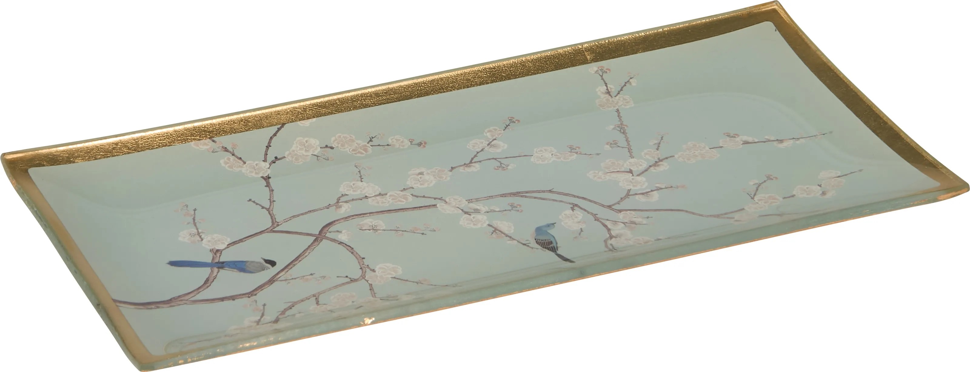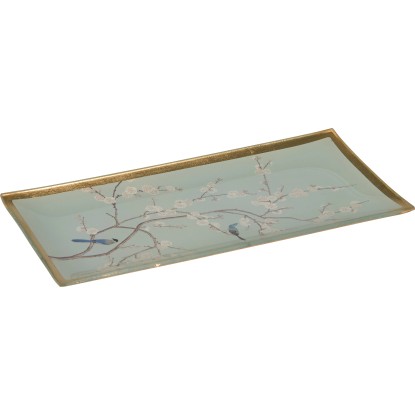 O ázijskú atmosféru sa postará obdĺžniková sklenená doska v kvetinovom dizajne z trendovej kolekcie Minimalist Zen. Je vhodná ako všestranný dekoračný prvok do všetkých interiérov. Môžete ju umiestniť na odkladací nábytok, komodu alebo jedálenský stôl. Dekoračná miska je vyrobená zo satinovaného skla, ktoré je ozdobené prepracovaným motívom. Dizajn dotvára zlatý okraj. Doska je vysoká 1 cm, široká 10 cm a má dĺžku 21 cm.