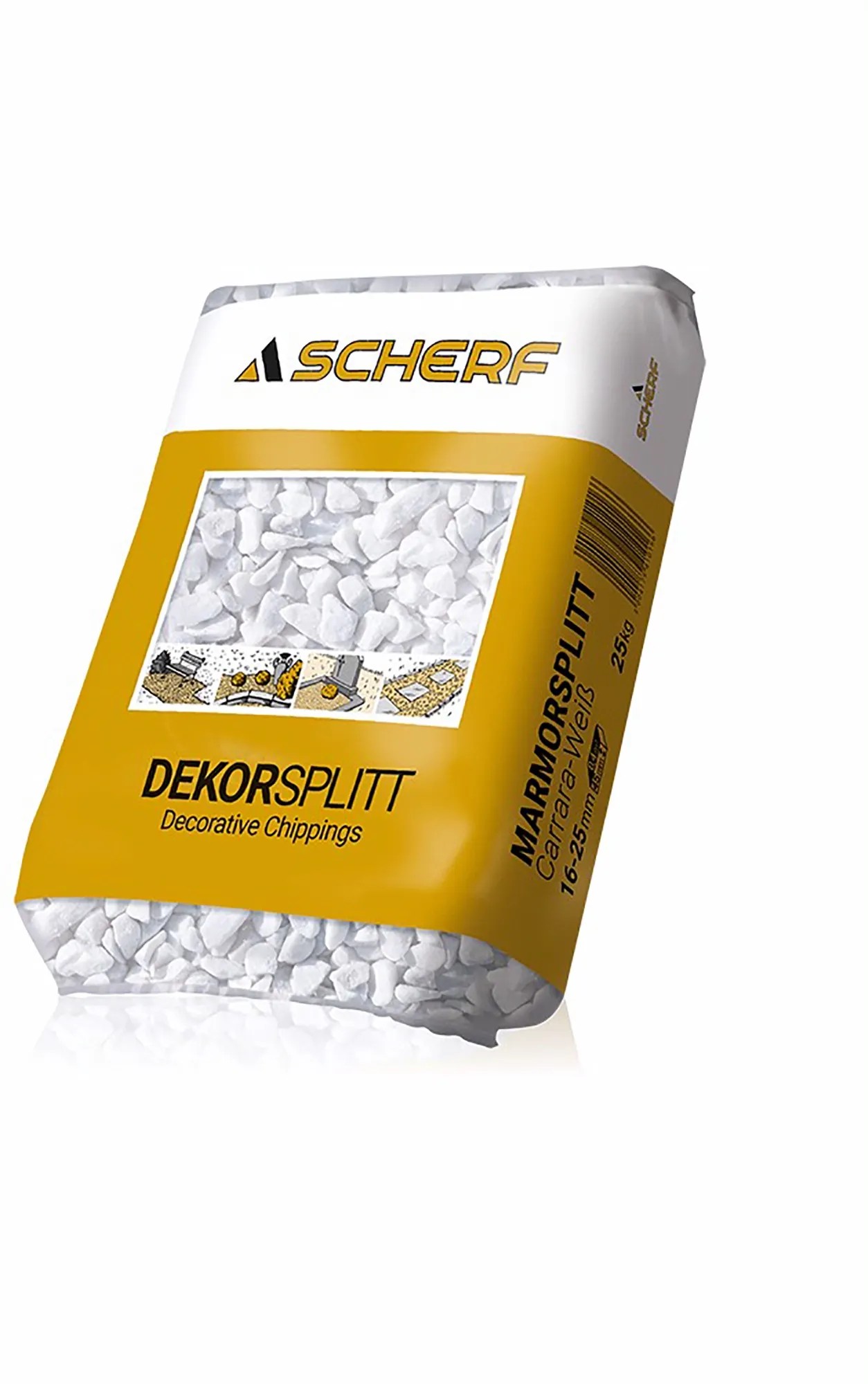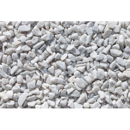 Snehobiela mramorová drvina zo známeho mramoru Carrara. Drvina Carrara je svetlá, biela mramorová drvina. Často je označovaná ako klasika medzi svetlými prírodnými kameňmi. Vďaka svojej svetlej farbe sa výborne hodí k tmavým farbám. Hodí sa najmä ako ochrana múrov proti striekajúcej vode alebo na pokrytie záhonov.