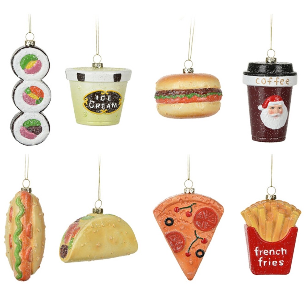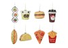 Závesné ozdoby na vianočný stromček s Fast Food tematikou. Sú vyrobené z polypropylénu. Veľkosť ozdoby je cca 9 x 5 x 11 cm. K dispozícii v 8 rôznych vyhotoveniach.