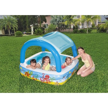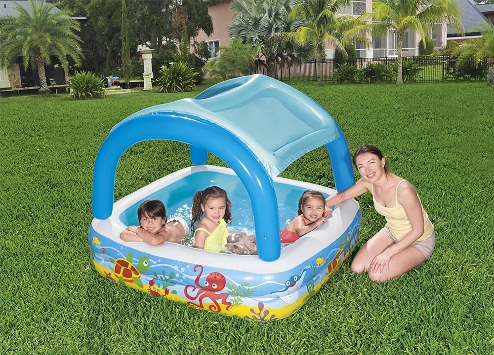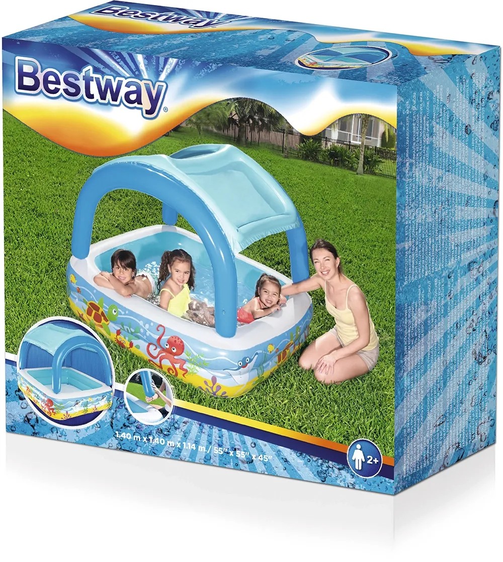 S Bestway detským bazénikom so zastrešením je hranie a zábava na prvom mieste. Ak slnko niekedy svieti príliš silno, je možné zastrešenie kedykoľvek umiestniť na bazénik, ktorý si žiada tieň. Do bazénika sa vojde cca 265 l vody.