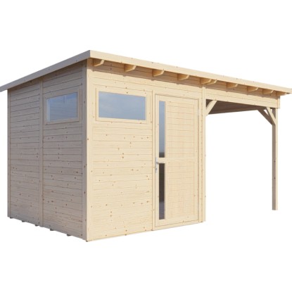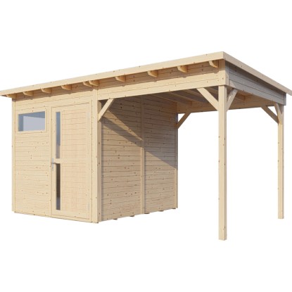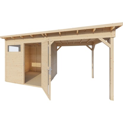 Bertilo Drevený domček na náradie Pentus 2 Lounge, prírodný, 449 x 234 cm