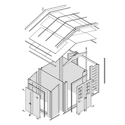 Konštrukcia domčeka je založená na princípe "priečneho rezu", ktorú trvá zostaviť o niečo dlhšie, ale dodáva záhradnej chate viac pevnosti a odolnosti. Zostavenie novej chaty bude skutočným potešením pre každého DIY nadšencov.