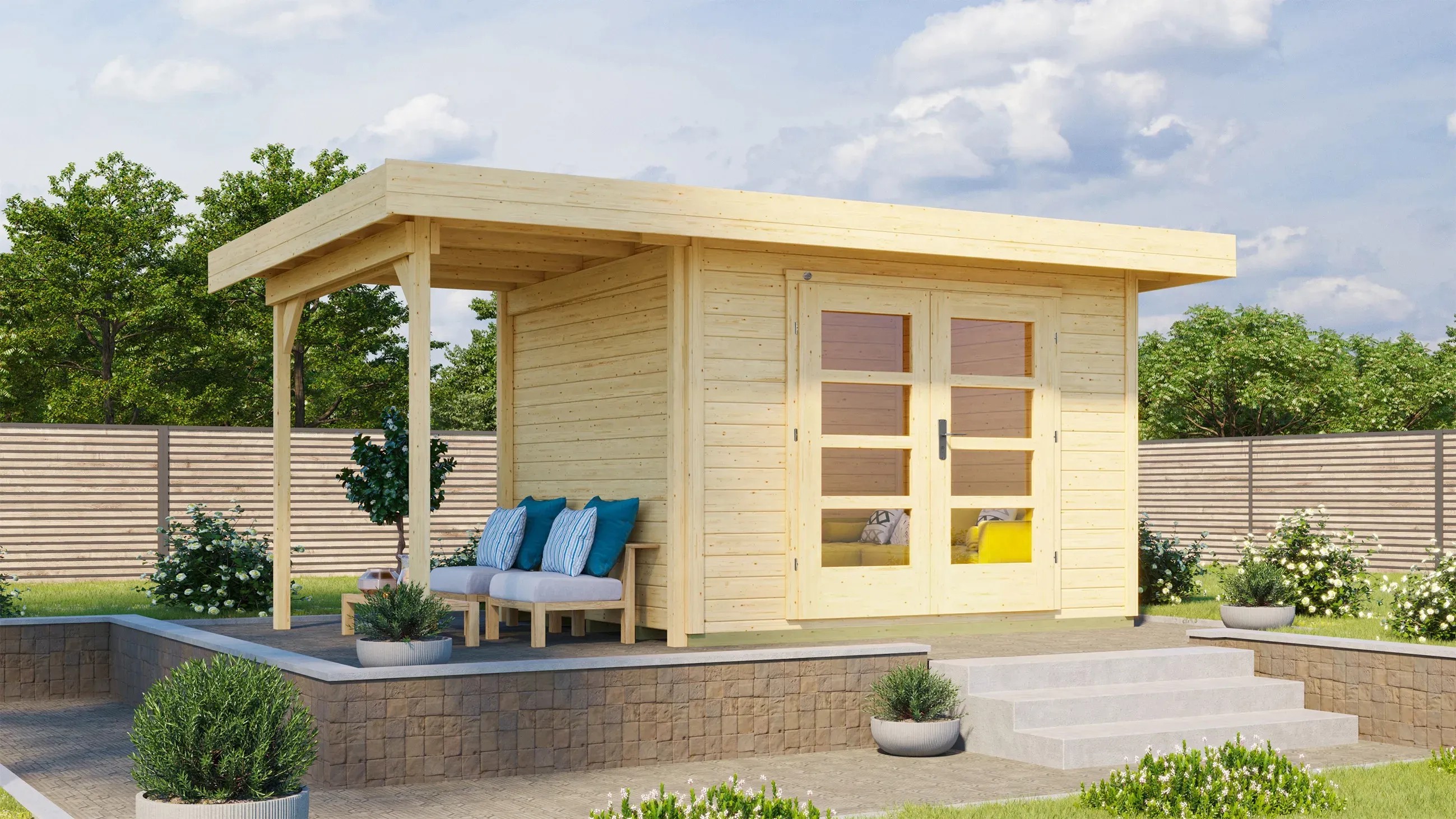 Záhradný domček je vyrobený z neošetreného dreva so zásuvným a skrutkovacím systémom. Vďaka prírodnému povrchu zostáva zachovaný prírodný vzhľad s drevenou kresbou. Na ochranu pred poveternostnými vplyvmi je možné povrch individuálne natrieť lakom alebo lazúrou. Na montáž záhradného altánku nemusíte byť profesionálnym remeselníkom. Vďaka praktickému zásuvnému skrutkovaciemu systému je možné bez problémov vykonať montáž a jednotlivé diely je možné ľahko spojiť. Záhradný domček má stabilnú konštrukciu so stenami s hrúbkou 28 mm. Maximálne zaťaženie plochej strechy snehom je 75 kg/m2. Výška hrebeňa činí 226 cm, čo zaisťuje príjemnú voľnosť pohybu v interiéri. Vďaka špeciálnemu tvaru strechy sa kvalitné strešné pásy obzvlášť dobre hodí ako strešná krytina.