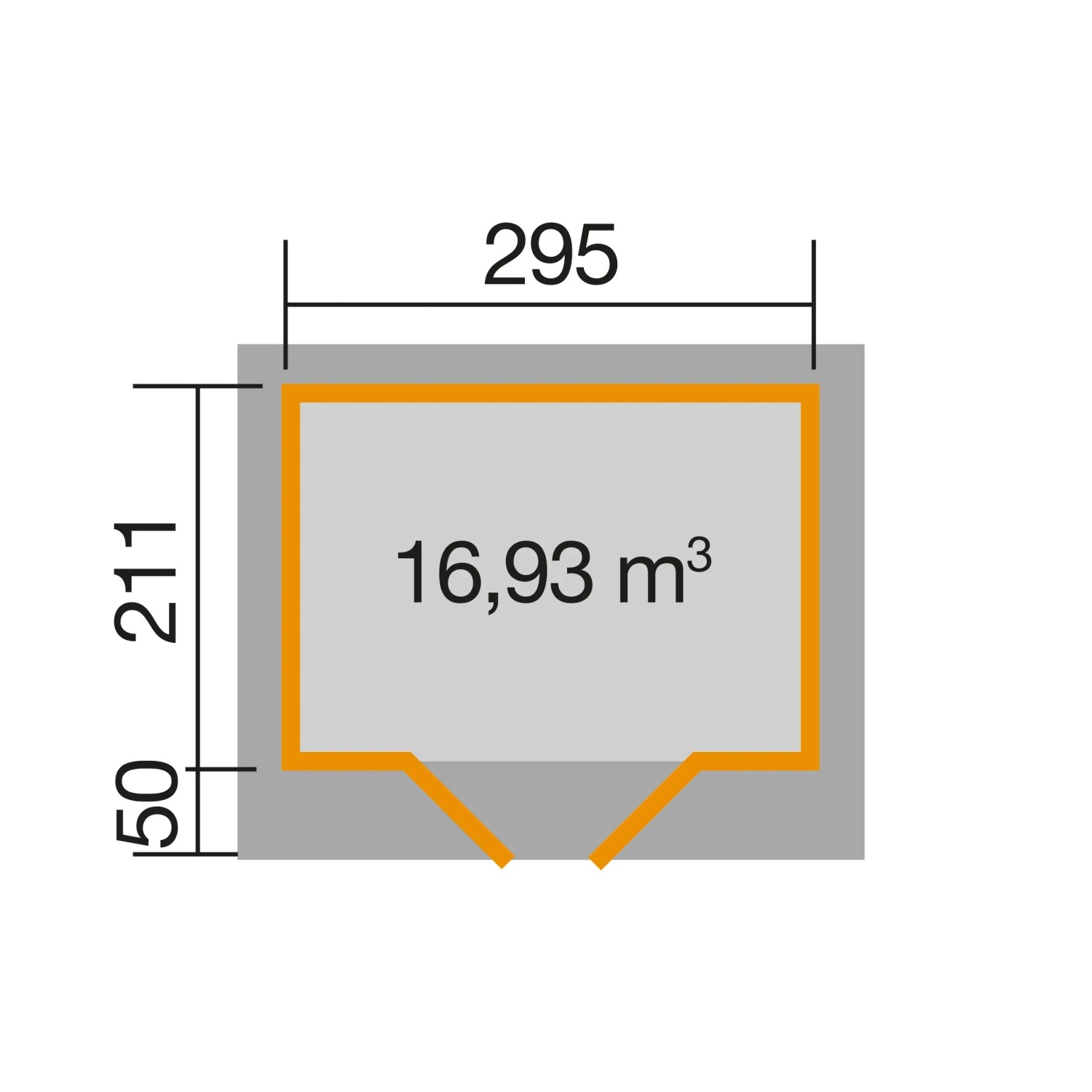 Weka záhradný domček z dreva je priestorovo úsporný a má pôdorysnú plochu 6,2 m2. Moderný záhradný domček sa hodí najmä na uloženie predmetov. Má priechodnú šírku 165 cm a výšku 172 cm. Široký vchod umožňuje ľahký vstup do dreveného záhradného domčeka aj s väčšími prístrojmi, záhradnými potrebami, bicyklami a záhradným nábytkom.