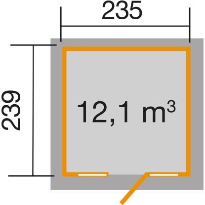 Dizajnový záhradný domček Panorama 172 v modernom vzhľade má pôdorys 5,62 m2 a je možné ho využiť ako kôlňu na náradie, záhradný altánok alebo chatku. Vchod s rozmermi 81 x 173 cm umožňuje pohodlný vstup aj s väčšími prístrojmi, záhradnými potrebami, bicyklami a záhradným nábytkom.