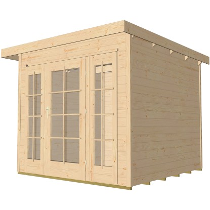 Záhradný domček je vyrobený z neošetreného dreva zrubovej konštrukcie. Vďaka prírodnému povrchu zostáva zachovaný prírodný vzhľad s drevenou kresbou. Na ochranu pred poveternostnými vplyvmi je možné povrch natrieť lakom alebo lazúrou. Na montáž záhradného domčeka nemusíte byť profesionálnym remeselníkom. Vďaka praktickému zásuvnému skrutkovaciemu systému je možné bezjednotlivé diely ľahko spojiť. Kvalitné rámové jednokrídlové dvere s presklením a kľukou vrátane cylindrického zámku zaisťujú presvetlenie vnútorných priestorov a výhľad do záhrady. Domček má robustnú konštrukciu so stenami s hrúbkou 21 mm. Maximálne zaťaženie sedlovej strechy snehom je 75 kg/m2. Vďaka špeciálnemu tvaru strechy sú ako strešná krytina vhodné kvalitné strešné pásy.