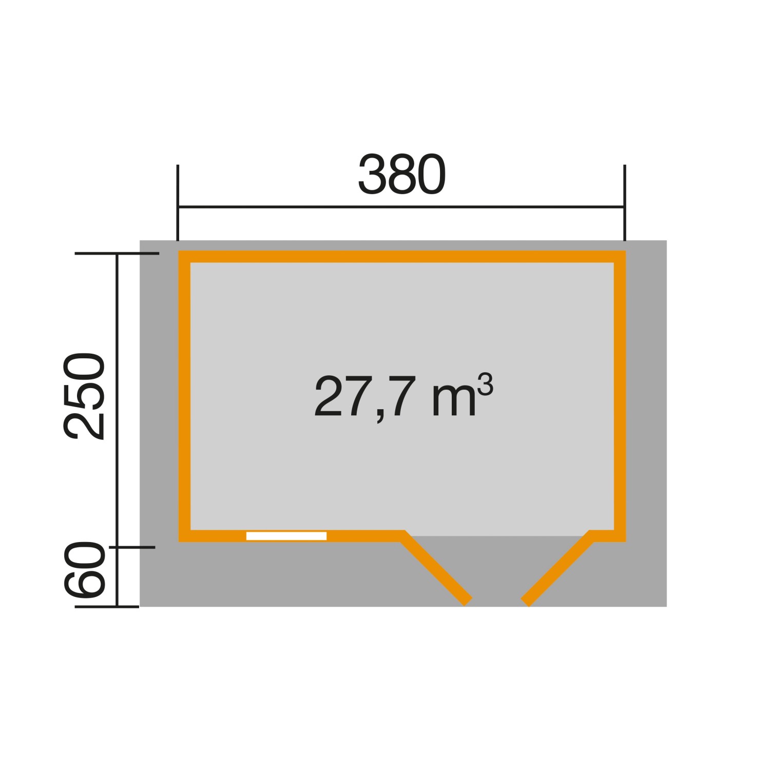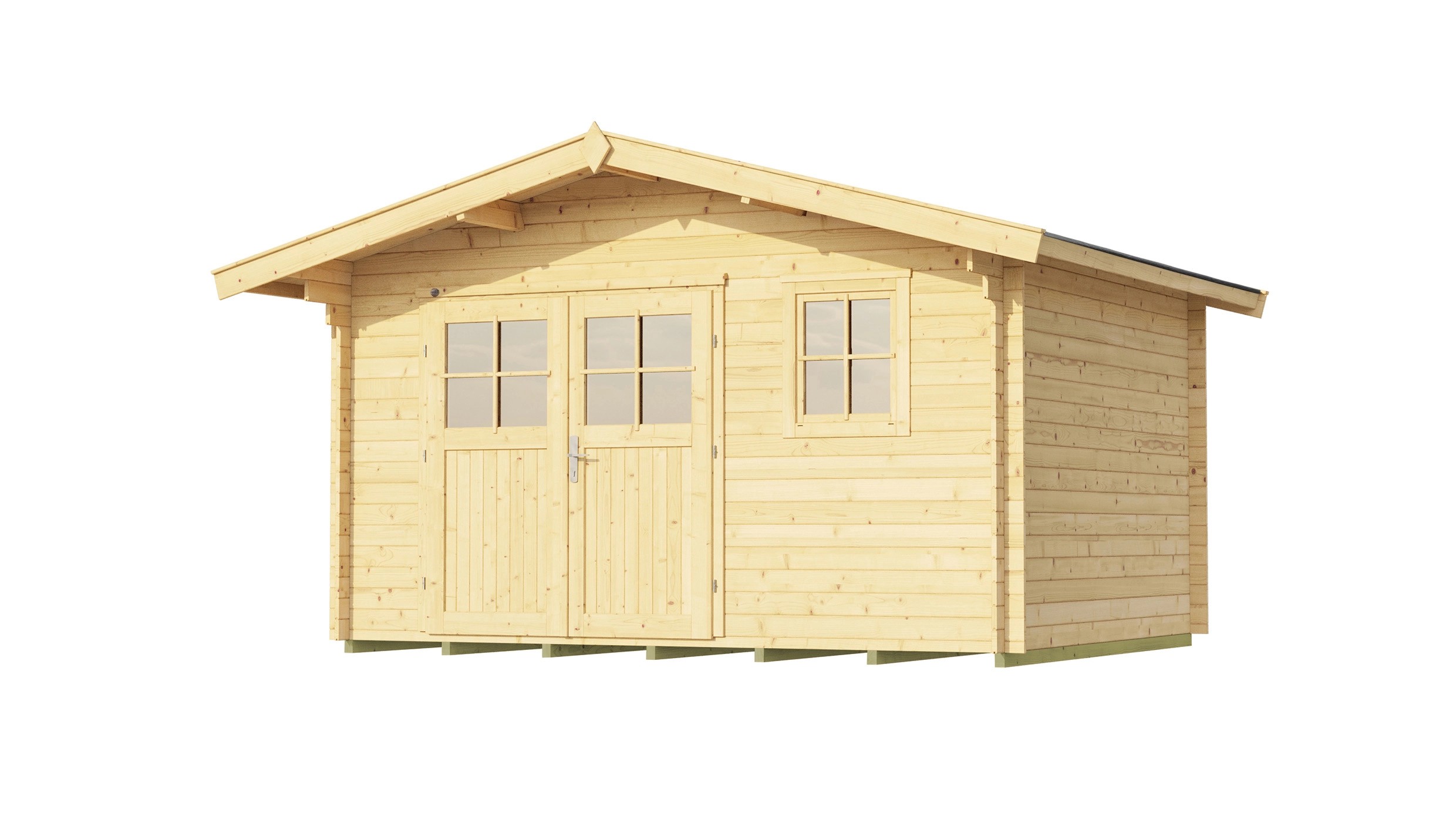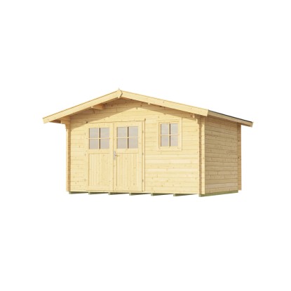 Drevený záhradný domček Weka v klasickom vzhľade má pôdorys 9,5 m2 a je vhodný ako kôlňa na náradie, záhradný altánok alebo chatka. Vchod s rozmermi 173 x 165 cm umožňuje pohodlný vstup aj s väčšími prístrojmi, záhradnými potrebami, bicyklami a záhradným nábytkom.