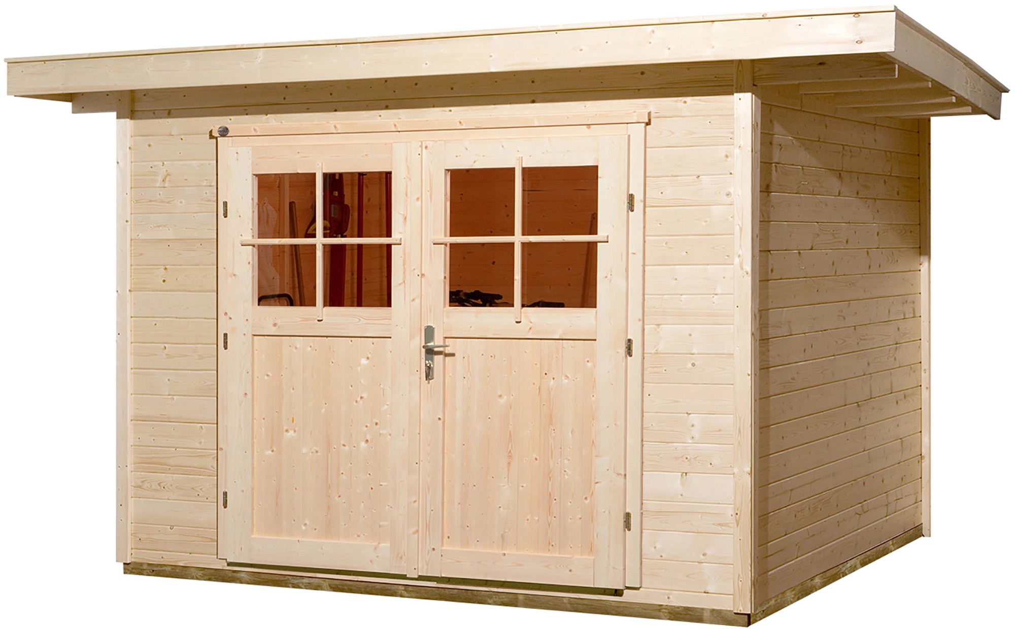 Drevený záhradný domček Weka 179 v modernom vzhľade má pôdorys 8,88 m2 a je možné ho využiť ako kôlňu na náradie, záhradný altánok alebo chatku. Vchod s rozmermi 165 x 173 cm umožňuje pohodlný vstup aj s väčšími prístrojmi, záhradnými potrebami, bicyklami a záhradným nábytkom.