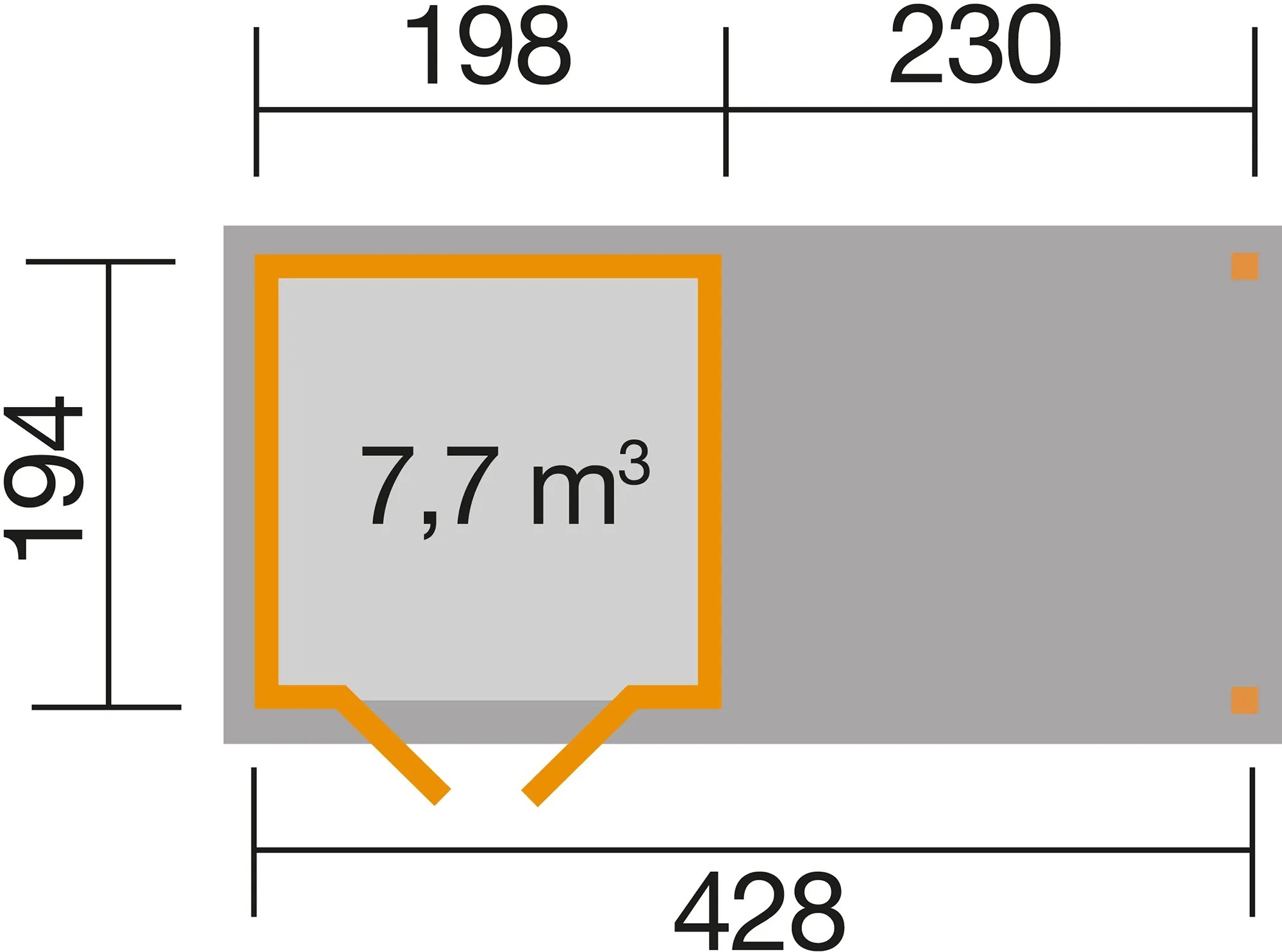 | Hrubý priestorový obsah, len domček: | 7,7 m³ |