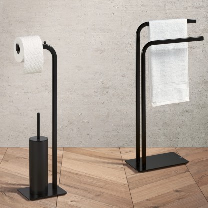 baliv Stojan na uteráky ST-6885, 2 ramenný, matná čierna, 48,5 x 20 x 80 cm