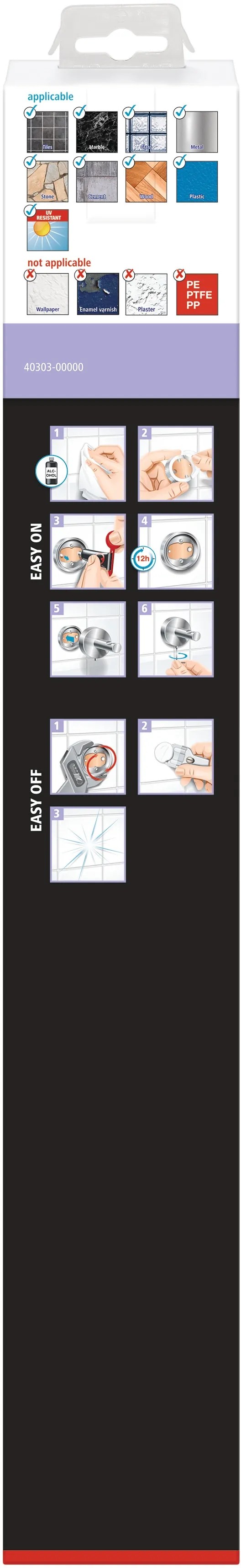 Keďže sa otočný držiak na uteráky pripevňuje pomocou lepidla, je možné ho v kúpeľni umiestniť kdekoľvek a vyžaduje iba 12hodinovú dobu zaschnutia, aby bola dosiahnutá maximálna pevnosť. Vŕtanie odpadá, steny a obklady teda zostanú nepoškodené. Háčik sa ľahko a bez stopy odstráni a znovu namontuje inde s adaptérom BK20.