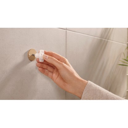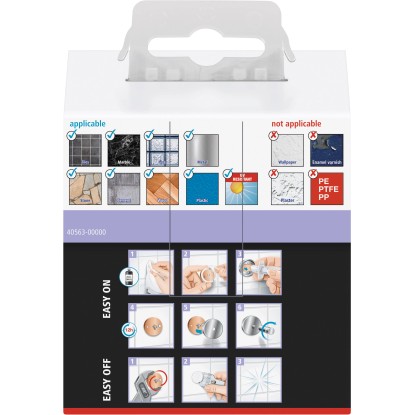 Háčik na uteráky sa na stenu bezpečne pripevní pomocou lepiaceho riešenia tesa. Nie je potrebné žiadne náradie ani vŕtanie. Pri odstránení nezanecháva stopy. Možno ho ľahko použiť znova. Stačí prikúpiť adaptér BK73 (predáva sa samostatne) a znovu háčik rovnakým spôsobom pripevniť.