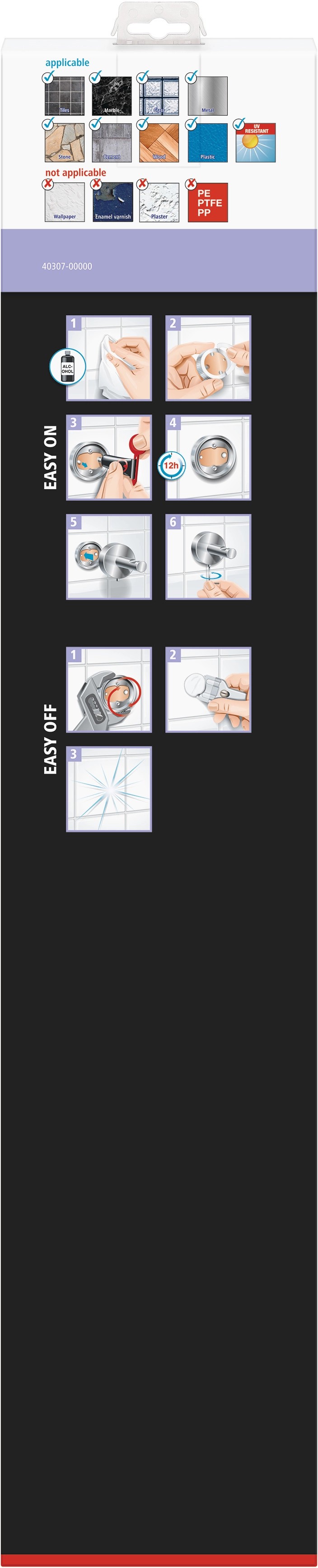 Spoľahlivé pripevnenie samolepiaceho dvojitého držiaka uterákov tesa Moon je ľahké. Tento elegantný a nadčasový držiak vašu kúpeľňu vylepší.
