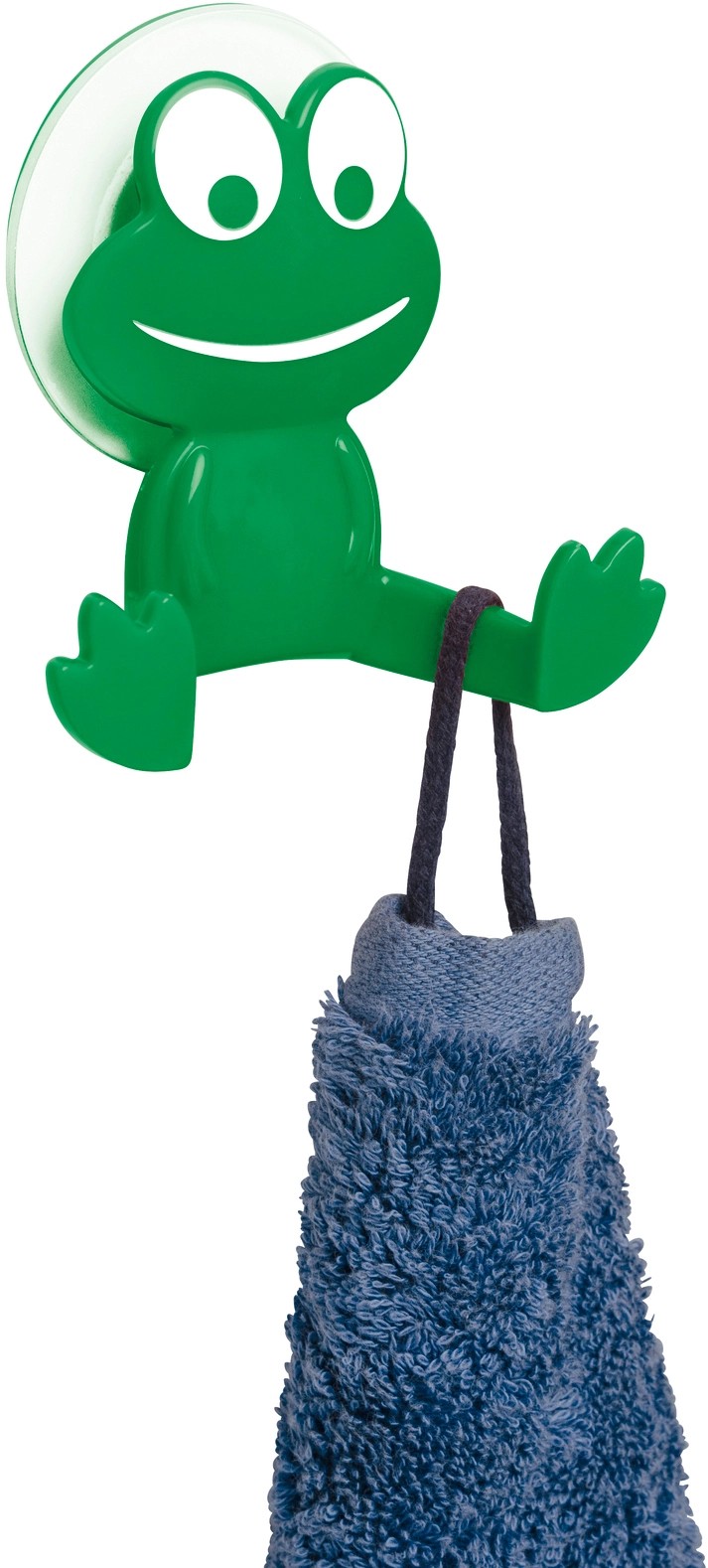 Veselý zelený háčik na stenu presvedčí silným držaním vďaka veľkej prísavke. Optimálne sa hodí do detskej izby, kúpeľne, WC pre hostí a do kuchyne. Optimálny pre uteráky, utierky na riad, oblečenie a podobne. Pre upevnenie háčika jednoducho navlhčite zadnú stranu a pritlačte. Nie je potrebné vŕtanie