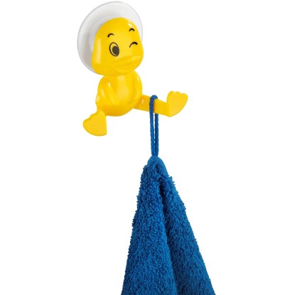Roztomilý Wenko prísavný háčik s dizajnom kačky prináša spestrenie do vašej kúpeľne a aj tí najmenší sa budú zabávať pri umývaní rúk a sprchovaní. Vďaka vysokej sacej sile plastový háčik niečo vydrží a okrem toho sa dá veľmi jednoducho upevniť. Prísavku jednoducho zľahka navlhčite na zadnej strane a pritlačte na požadované miesto. Háčik má univerzálne použitie a vnáša poriadok do vášho domova, či už do kúpeľne, kuchyne, alebo aj do detskej izby.