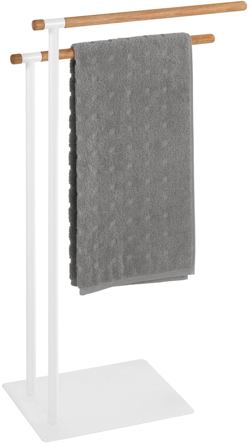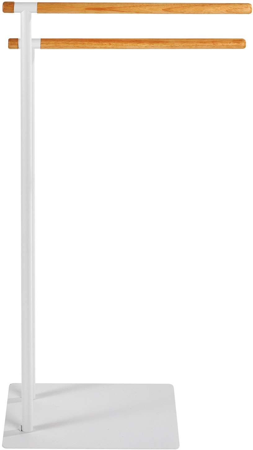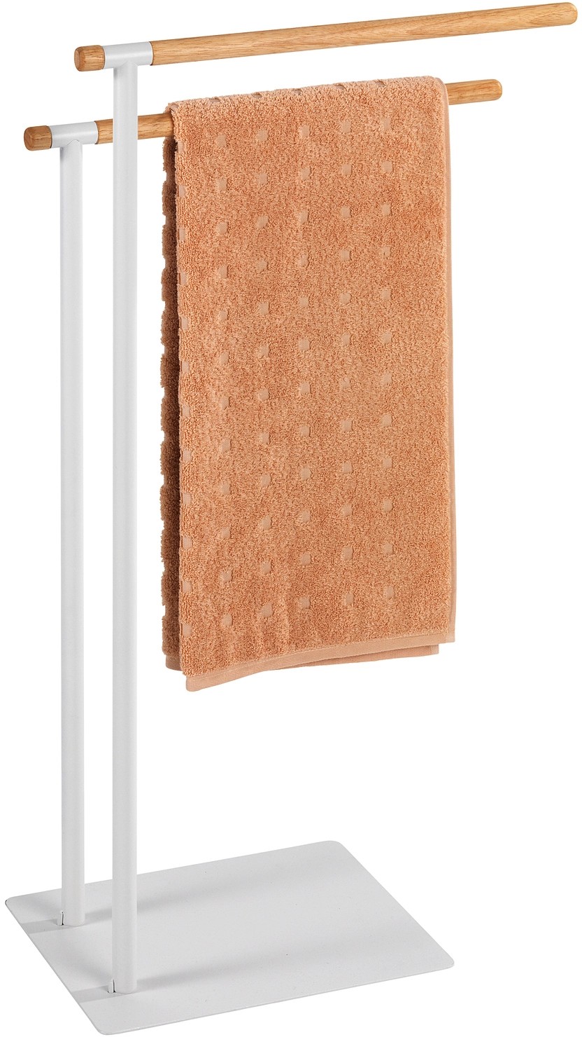 Stojan na oblečenie sa ideálne hodí na priestorovo úsporné uloženie. Na dvoch paralelne prebiehajúcich, stupňovito usporiadaných závesných tyčiach nájdu dostatok odkladacieho priestoru uteráky a osušky, ako aj oblečenie, a sú tak vždy na dosah ruky. Stabilitu voľne stojaceho stojanu na uteráky zabezpečuje ťažký podstavec, ktorý sa môže kedykoľvek umiestniť na požadované miesto.