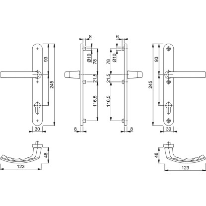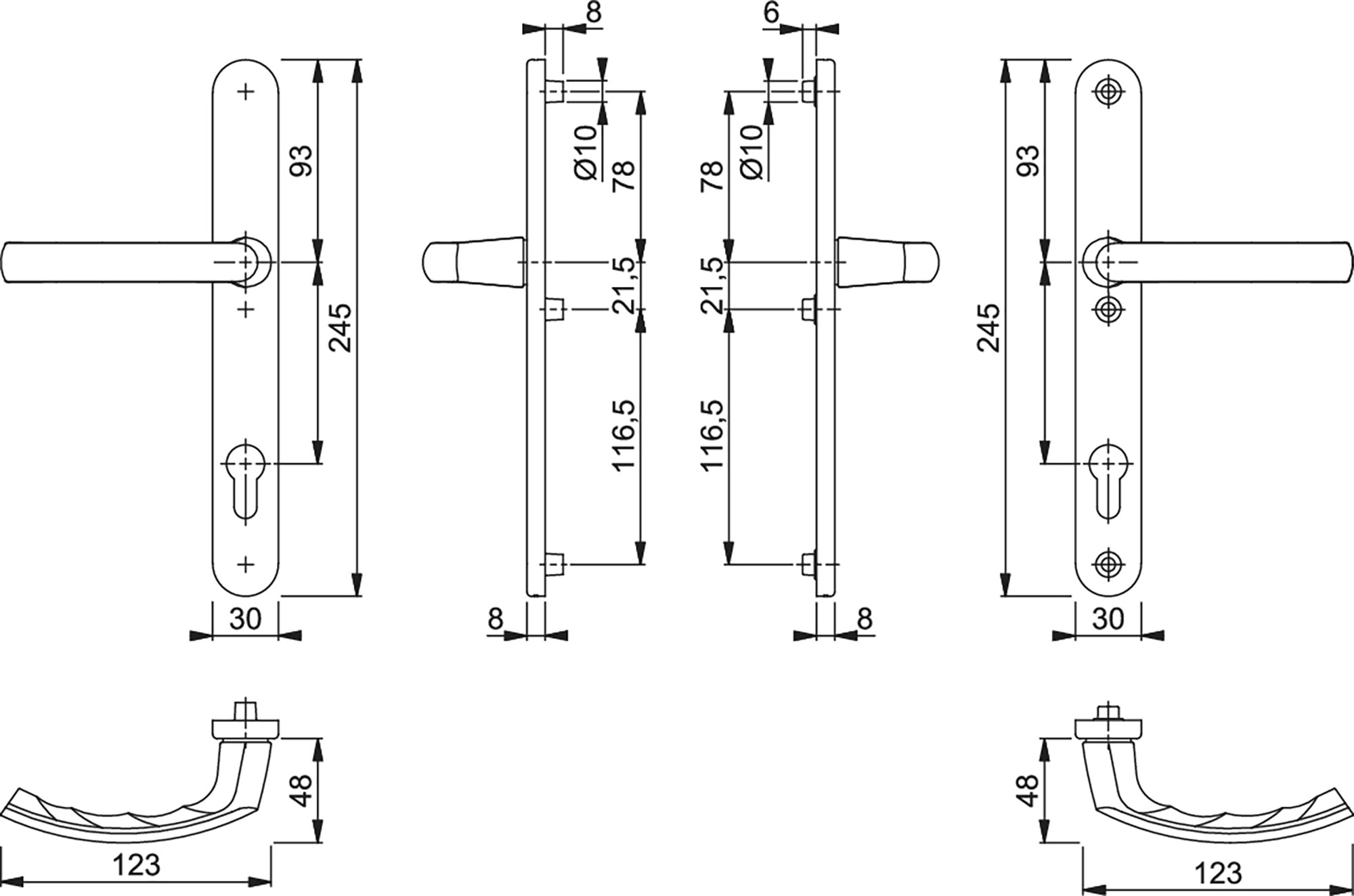 Hoppe Úzke štítové dverové kovanie Lima 8/10 PZ-92, čierny/biely hliník