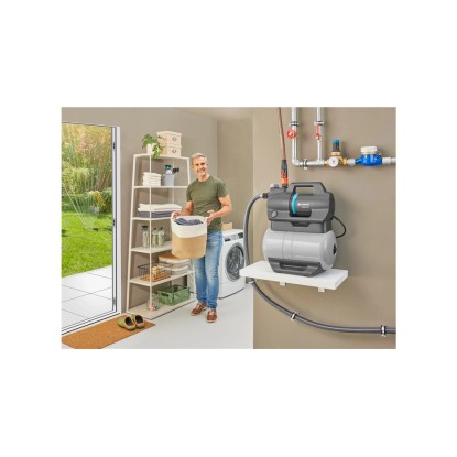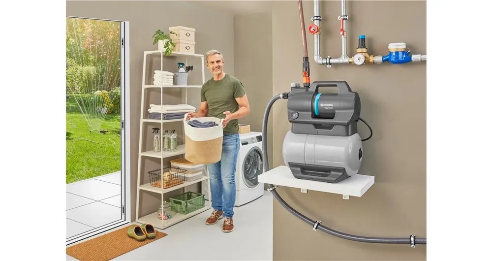 Výkonná a účinná domáca vodáreň 3800 Silent značky GARDENA je neoddeliteľnou súčasťou zásobovania domácnosti a záhrady vodou. Umožňuje využiť dažďovú vodu alebo vodu zo studne na zavlažovanie záhrady alebo ako úžitkovú vodu v domácnosti, napríklad na splachovanie toalety alebo na prevádzku práčky. Domáca vodáreň sa automaticky zapne v závislosti od potreby vody a potom sa opäť vypne.
