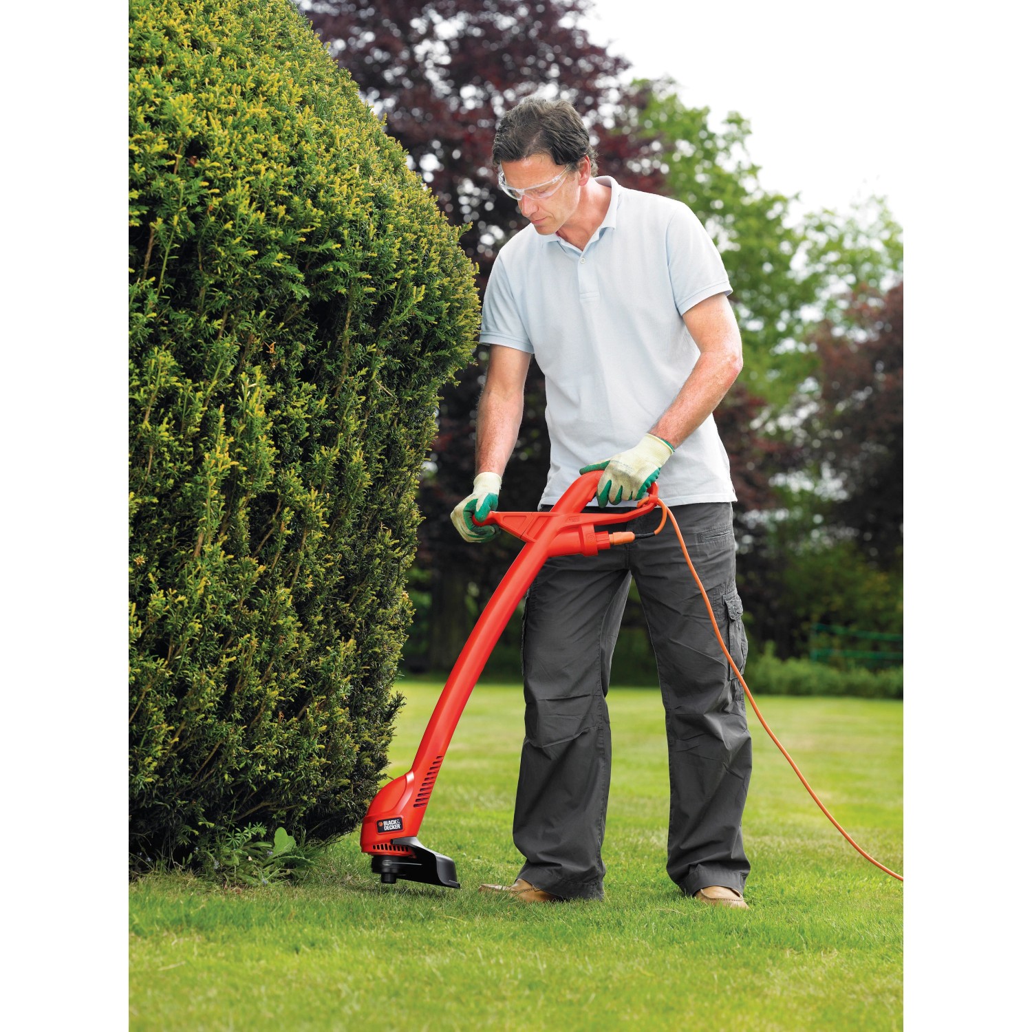 Black+Decker elektrická strunová kosačka GL310 s motorom 300 W. Záber strunovej kosačky je 25 cm so strunou o rozmere 1,6 mm. Kosačka má obojručné uchytenie a poloautomatický poklepovú mechanizmus struny.