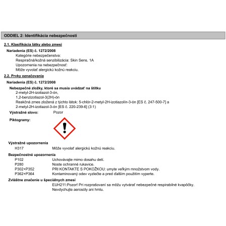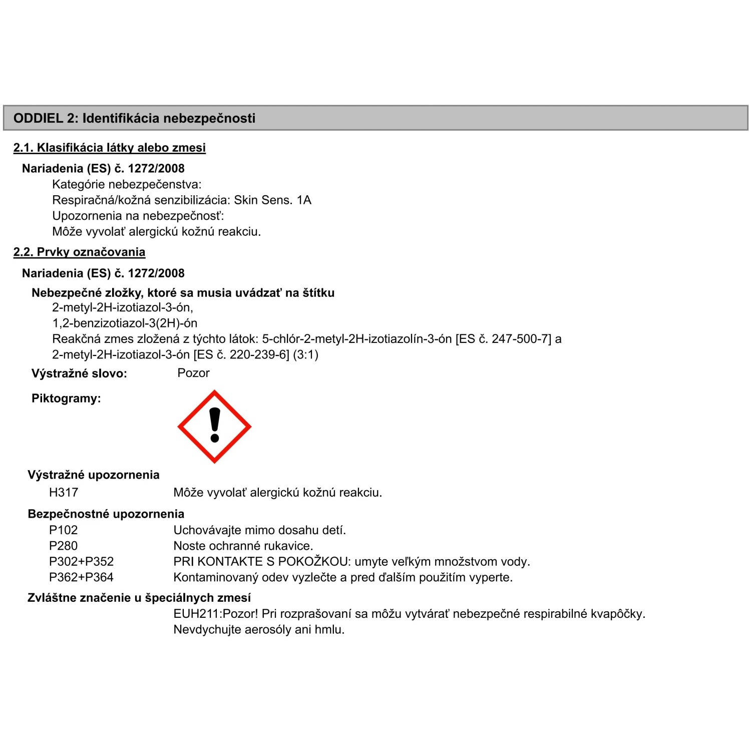 | Vhodné pre alergikov na izotiazolinóny: | Nevhodný |