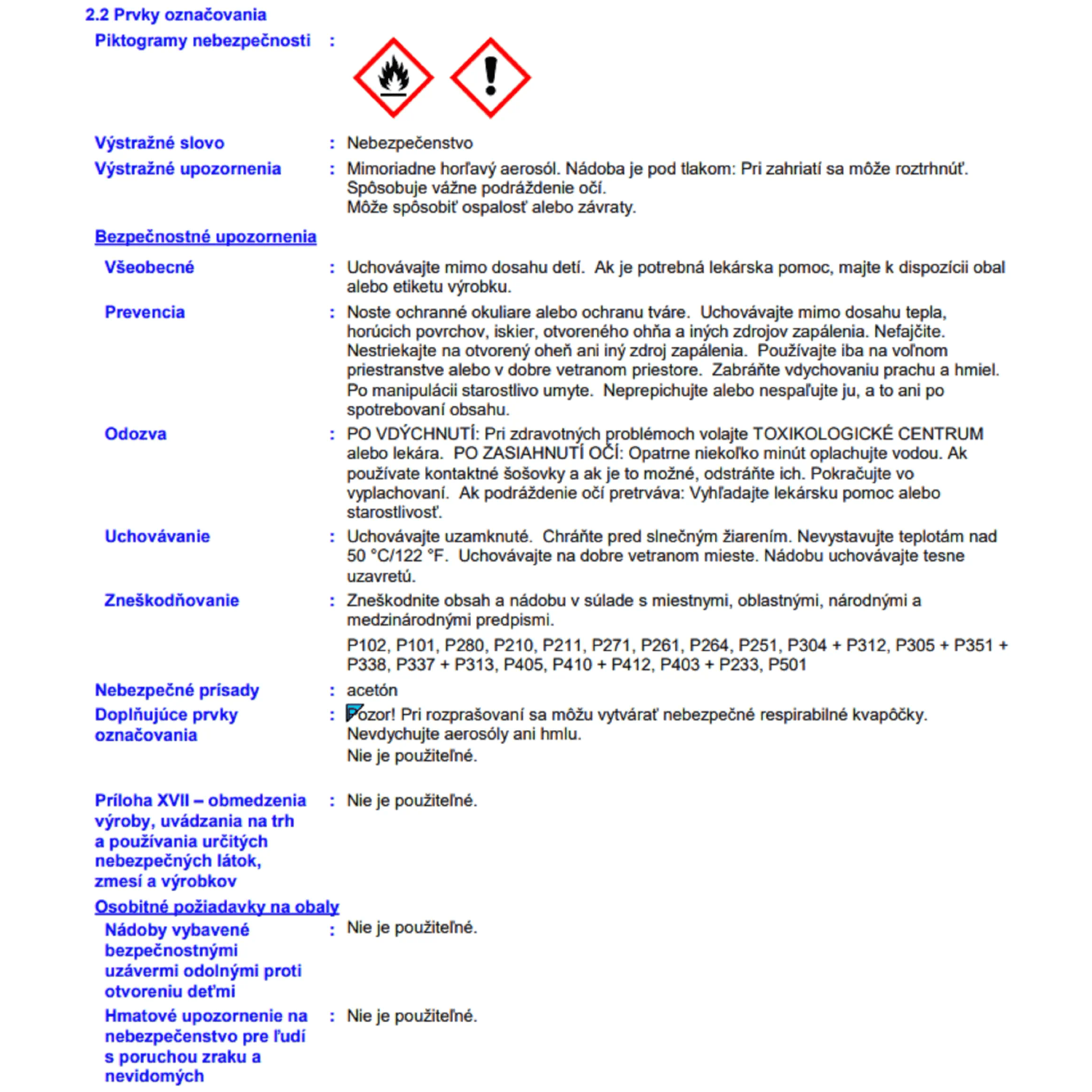 | Vlastnosti výrobku | |
