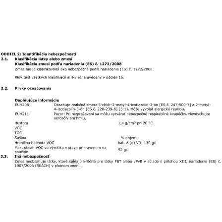 | Trieda krycej schopnosti: | 2 - Dobrá krycia sila |