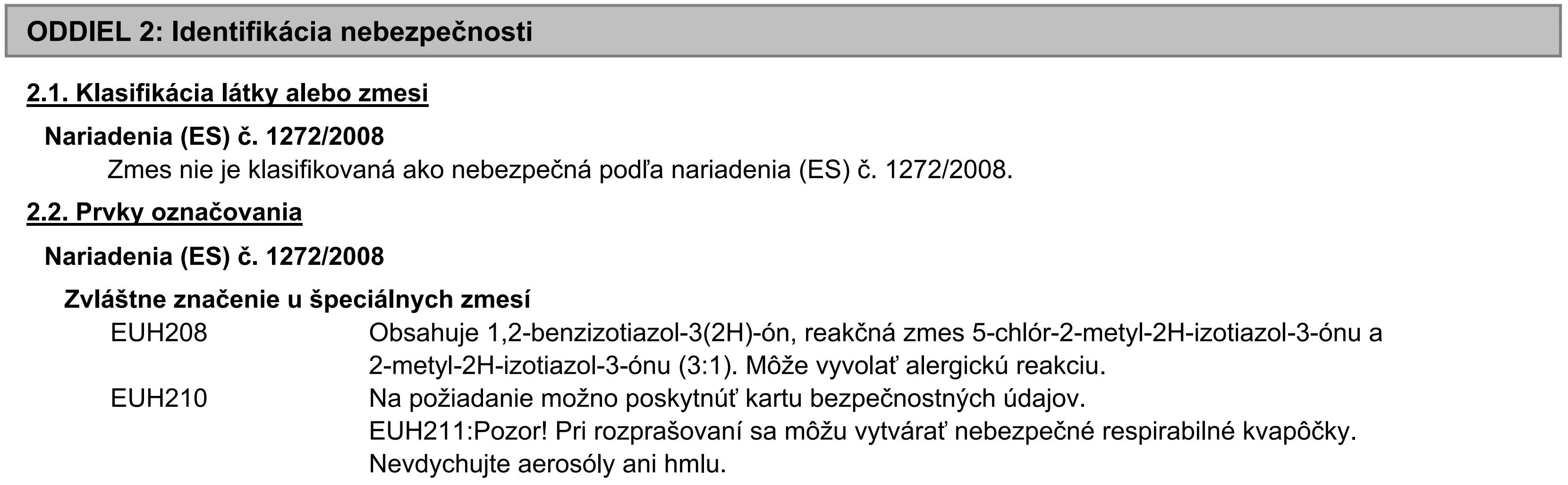 | Bez rozpúšťadiel: | Bez obsahu rozpúšťadiel |