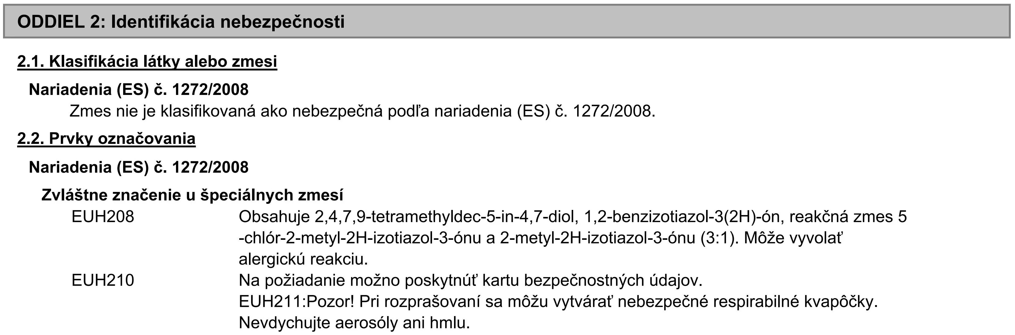 | Vhodné pre alergikov na izotiazolinóny: | Nevhodný |